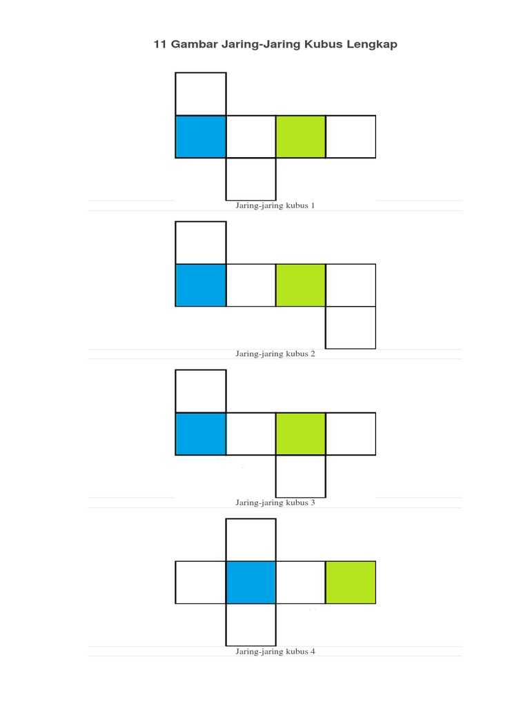 Dibawah ini merupakan gambar jaring jaring kubus lengkap.